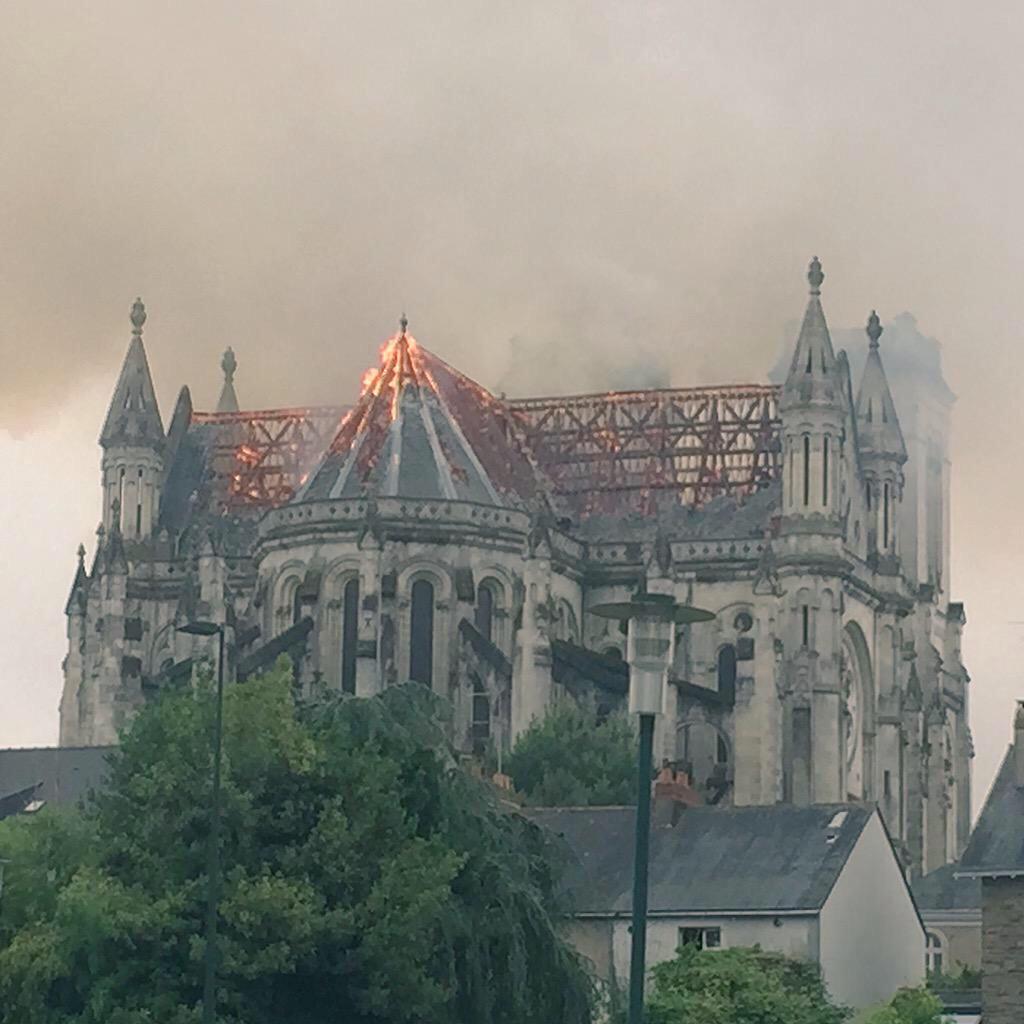 Flames burst through roof: Blaze engulfs historic basilica in Nantes, France (VIDEO)