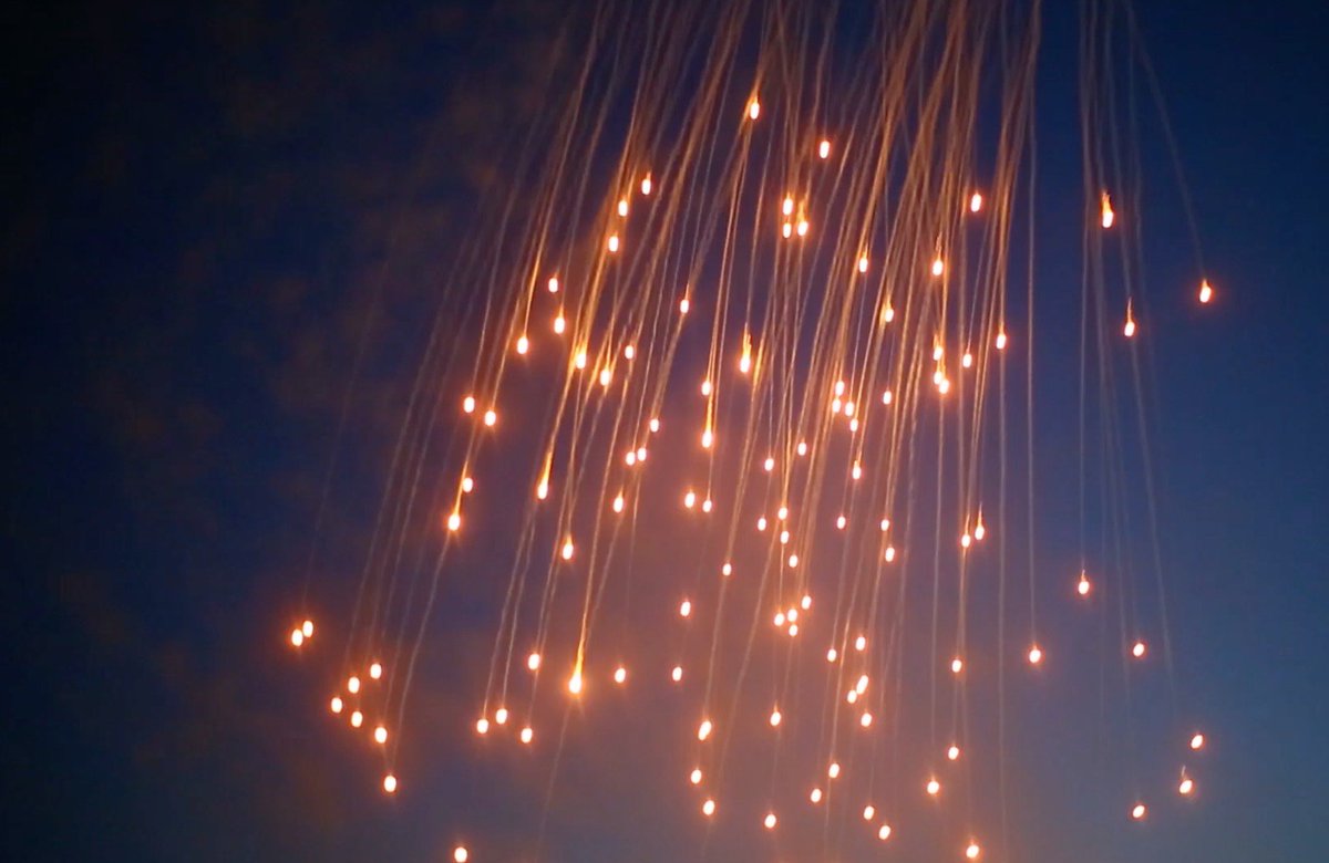 Update: Footage published on Al-Masdar News moments ago appears to show white phosphorus or cluster bombs falling over Raqqa, which are both banned internationally if used on residential areas.