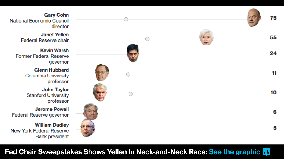 “Fischer was the voice of experience, having been a central banker and his international standing was impeccable,” JPMorgan Chase & Co.’s Chief U.S. Economist Michael Feroli said. “It adds a further element of uncertainty to policy and who will be running policy early next year. It adds to the cloudiness of the outlook for monetary policy.”