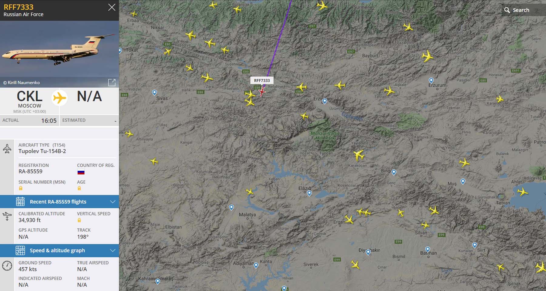 Mυστηριώδης πτήση έγινε χθες από την Ρωσία στην Τουρκία. Σύμφωνα με τα γειτονικά ΜΜΕ, ένα Tupolev Tu-154B-2 προσγειώθηκε χθες στο αεροδρόμιο Malatya Erhaç.